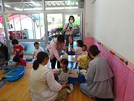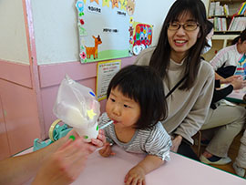 | 音楽に乗って楽しそう | ママ達がたくさん協力してくださりました | |