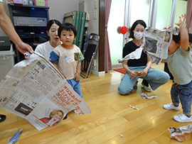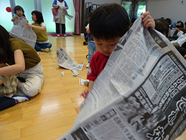 新聞紙で遊びました |