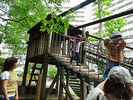 | 制作コーナーも楽しんでました | 木陰のアスレチックも登って遊びました | |